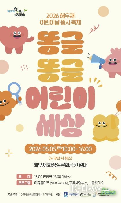 K-Classic News 기자 | ‘2026 해우재 어린이날 똥시 축제-똥글똥글 어린이 세상’이 5월 5일 오전 10시부터 오후 4시까지 해우재 화장실문화공원 일원에서 열린다.