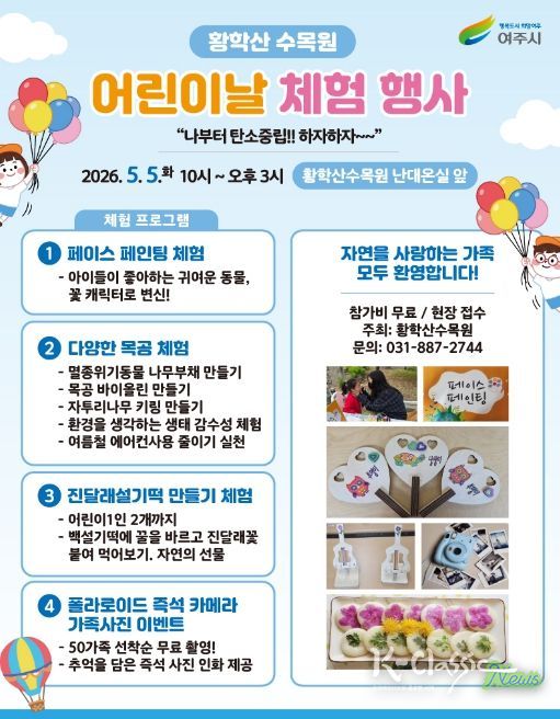 여주시 관계자는 “이번 어린이날, 황학산수목원의 푸른 자연 속에서 아이들이 마음껏 웃고 즐기며 자연과 한층 더 가까워지는 시간이 되길 바란다”며 “앞으로도 가족이 함께 소통하고 힐링할 수 있는 다양한 산림 문화 프로그램을 지속적으로 마련하겠다”고 밝혔다.