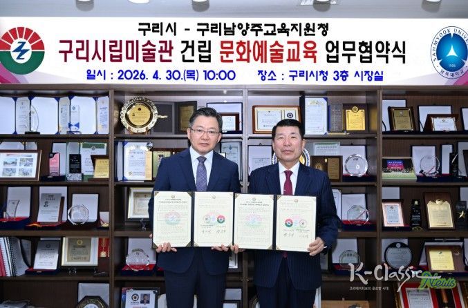 K-Classic News 기자 | 구리시는 4월 30일 구리시청 시장실에서 구리남양주교육지원청, 삼육대학교와 함께 ‘구리시립미술관 건립 추진 및 문화예술 교육 활성화를 위한 업무협약(MOU)’을 체결했다고 밝혔다.