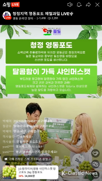K-Classic News 김지민 기자 | 온라인으로 개최한 충북 영동포도축제가 전 국민의 뜨거운 성원 속에 성공적으로 마무리 됐다.