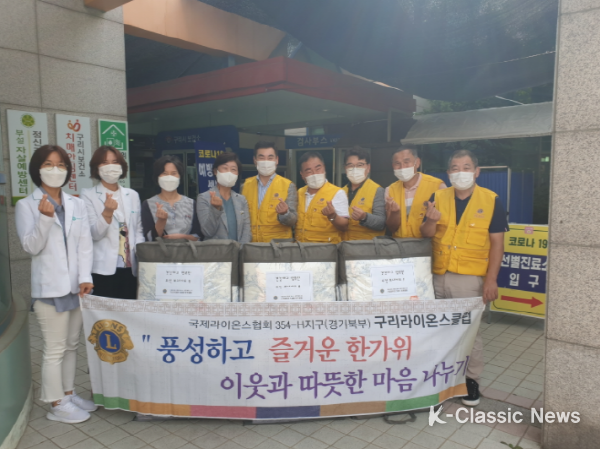 K-Classic News 김지민 기자 | 구리시는 16일 한가위를 앞두고 보건소 광장에서 구리라이온스클럽으로부터 100만원 상당의 ‘사랑의 이불’ 전달식을 가졌다.