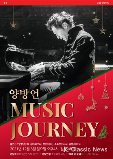 얼리 크리스마스 콘서트 ‘양방언 Music Journey’은 R석 3만원, S석 1만원으로 김포문화재단 홈페이지를 통해 예매가능하며, 공연 관련 문의는 김포문화재단 예술기획팀으로 하면 된다.