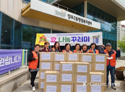 K-Classic News 최지은 기자 | 양주시 양주2동 지역사회보장협의체는 어버이날을 맞아 지난 2일 홀몸 어르신 30가구에 효(孝) 나눔 꾸러미를 전달했다.