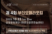K-Classic News 오형석 기자 | 부산의 오페라 저변 확대와 민간오페라단의 역할을 논의하는 '제4회 부산오페라포럼'이 오는 10월 23일(목) 오후 2시, 금정문화재단 아르코공연연습센터에서 열린다. 이번 포럼은 부산광역시오페라단연합회(회장 장진규)가 주최하고 부산소극장오페라축제 조직위원회가 주관하는 행사로, '부산오페라 시대를 위한 민간오페라단의 역할'이라는 주제를 중심으로 지역 오페라 생태계의 방향성을 모색한다. 부산은 오페라하우스 건립 등 공공 인프라 확충이 추진되는 가운데, 다수의 민간오페라단이 꾸준히 창작과 공연 활동을 이어오며 지역 문화예술의 한 축을 담당해왔다. 이번 포럼은 이러한 흐름 속에서 민간 중심의 창작 생태계와 공공 지원 시스템 간의 균형을 논의하고, 향후 '부산오페라 시대'의 청사진을 함께 그리기 위한 의미 있는 자리로 주목받고 있다. 포럼의 발제자로는 이성훈(큰보아즈 보칼레 앙상블 지휘자), 양승엽(부산광역시 음악협회 부회장), 그레이스 조(뉴아시아오페라단 단장)가 나서 현장 예술가와 행정, 국제 오페라 네트워크의 관점에서 부산 오페라단의 방향성을 제시한다. 좌장은 장진규(부산광역시오페라단연합회 회장)가 맡으며, 토론에는 이칠