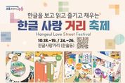 K-Classic News 기자 | 세종시문화관광재단은 오는 10월 18일부터 26일까지 한솔동 한글사랑거리(첫마을 정류장 인근) 일원에서 ‘한글 사랑거리 축제’를 개최한다. 이번 축제는 한글문화도시 세종의 상징공간인 ‘한글 사랑거리’를 중심으로 시민이 한글을 보고, 읽고, 즐기며 한글문화의 가치를 체험하는 문화축제로 마련됐다. 특히 한국영상대학교, 한솔동 상인회 등 지역기관이 함께 참여해 한글문화를 지역상권과 연결하고 세종만의 한글문화 네트워크를 확장할 전망이다. 행사는 10월 18~19일과 24~26일, 총 5일간 진행되며, ‘읽고·보고·즐기고·채우는’ 네 가지 주제를 중심으로 전시·공연·체험·먹거리가 어우러진 다채로운 프로그램으로 시민들을 맞이한다. 먼저 한글을 ‘읽고’ 즐길 수 있는 테마에서는, 한글 이야기 공모전 선정작 5편과 삽화·캐릭터 디지털 감상, 거리에서 펼쳐지는 자율 독서로 한글의 즐거움을 느껴볼 수 있다. 거리 곳곳에서는 시민들이 ‘보고’ 즐길 수 있는 다양한 공연이 이어진다. 18일에는 한글 컬러마임 퍼포먼스(13시), 세종거리예술가 공연(17시)이 펼쳐지고 19일·25일