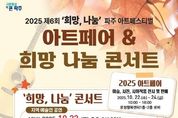 K-Classic News 기자 | 파주시가 주최하고 ㈔한국예술문화단체총연합회 파주지회에서 주관하는 '2025 제6회 ‘희망, 나눔’ 파주 아트페스티벌'이 10월 22일부터 24일까지 3일간 운정행복센터에서 개최된다. 올해로 6회를 맞이한 이번 축제는 다양한 분야의 예술을 매개로 온정을 나누고 희망과 행복을 전하기 위해 마련됐으며, 축제를 통해 발생한 수익금은 어려운 이웃에게 전달되고 있다. 축제 기간 동안 운정행복센터에 파주예총 전문 예술인들의 미술, 사진, 시화 작품 등을 전시하고 판매하는 공간이 운영되며, 23일과 24일에는 지역 예술인 및 초청 가수(전원석, 이규석, 녹색지대)들의 공연 ‘희망, 나눔 콘서트’가 개최된다. 공연 시작 전에는 무료로 가족사진 찍어주기 행사가 진행될 예정이다. 유초자 문화예술과장은 “이번 축제가 어려운 환경에 있는 이웃에게 나눔을 전하는 계기가 되기를 소망한다”라며, “일상 속에서 예술을 가까이 만날 수 있는 이번 축제에 시민 여러분의 많은 관심과 참여를 바란다”라고 말했다.