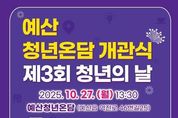K-Classic News 기자 | 예산군은 오는 10월 27일 오후 1시 30분, 예산읍 주교리에 위치한 청년거점공간 ‘예산청년온담’에서 개관식과 제3회 청년의 날 기념행사를 개최한다고 밝혔다. 이번 행사는 청년 인구 감소와 지역 소멸 위기에 대응하기 위해 조성된 청년 거점공간의 개관을 기념하기 위해 마련됐으며, 당초 법정기념일(9월 셋째 주 토요일)에 예정됐던 청년의 날 행사가 수해로 연기됨에 따라 두 행사를 함께 진행한다. 행사는 식전공연을 시작으로 △개관식 △청년의 날 기념식 △청년특강 순으로 진행되며, 지역 청년들이 대거 참석할 예정이다. ‘예산청년온담’은 청년 전용 복합공간으로, 연면적 2,092.96㎡, 지하 1층·지상 2층 규모로 조성됐으며, 내부에는 북카페, 공유오피스, 스터디룸, 강의실, 공유주방 등 다양한 공간이 마련돼 있어 청년들의 창업·학습·휴식·소통이 어우러지는 열린 플랫폼으로 운영될 예정이다. 특히 이번 행사에는 서울대학교병원 강남센터 정신건강의학과 윤대현 교수가 초청돼 ‘청년, 단단한 멘탈로 나아가다 – 불안을 용기로 바꾸는 마음 근육 키우기’를 주제로 특강을 진행
