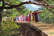 K-Classic News 기자 | ‘제52주년 고창모양성제’가 연일 대성황을 이룬 가운데 모양성제의 하이라이트 ‘답성놀이’가 열려 관심을 끌었다. 1일 오전 10시 모양성 성곽에는 형형색색의 한복 물결이 펼쳐졌다. 올해 모양성 답성놀이는 한국생활개선회 고창군연합회 주관으로 진행됐다. 14개 읍·면에서 참여한 600여명 여성회원이 모두 한복을 차려입고 머리에 돌을 이고 성을 밟았다. 일반 군민과 관광객들도 답성놀이에 참여해 나라의 안녕과 저마다의 건강을 기원했다.전국 각지에서 찾은 사진작가들도 가을 정취를 배경으로 아름다운 한복을 입은 참가자 행렬을 담아내기에 바빴다. 고창군 모양성은 조선 초기에 축조된 성으로 성의 둘레가 1684m에 이른다. 예로부터 ‘돌을 머리 위에 이고 성을 한 바퀴 돌면 다리병이 낫고, 두 바퀴 돌면 무병장수하고, 세 바퀴 돌면 극락왕생 한다’는 전설이 있다. 심덕섭 고창군수는 “답성놀이는 군민과 관광객 어우러져 축성의 의미를 되새기며 조상의 지혜와 전통을 잇는 가교와 같은 프로그램이다”라며 고창을 찾는 모든 이들의 무병장수와 행복을 기원했다. 고창군 관계