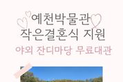 K-Classic News 기자 | 예천박물관은 오는 3월부터 야외 잔디마당을 ‘작은결혼식’ 장소로 무료 대관한다고 밝혔다. 이번 사업은 과도한 결혼 비용과 형식 중심의 예식 문화에서 벗어나, 실속 있고 가치 중심의 결혼식을 장려하기 위해 마련됐다. 특히 자연 친화적이고 개방감 있는 예천박물관 야외 잔디마당의 공간적 특성을 살려 가족·친지 중심의 따뜻한 예식을 지원할 계획이다. 대관 대상은 신청일 현재 부부 중 1인 이상이 예천군에 주소를 두고 있는 예비 부부로, 신청을 희망하는 경우 예천박물관 홈페이지에서 신청서를 내려받아 작성 후 제출하면 된다. 예식은 양가 하객 100명 이하의 소규모로만 가능하며, 음식 제공은 음료에 한해 허용되고 피로연은 금지된다. 김상식 문화관광과장은 “박물관의 아름다운 잔디마당이 예비부부들에게는 실속 있고 특별한 추억의 장소가 되길 기대한다”며 “이용객들이 불편함 없이 생애 가장 빛나는 순간을 맞이할 수 있도록 운영과 지원에 최선을 다하겠다”고 말했다.