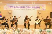 K-Classic News 기자 | 횡성군은 12일 여성회관 대강당에서 강사와 수강생 등 250여 명이 참석한 가운데 2025년 여성회관 교육 수료식 및 발표회를 성황리에 개최했다. 올해 여성회관 교육프로그램은 4개 분야 31개 과목을 상하반기 각 4개월씩 운영하여 568명이 수료했으며, 수료식은 그간 수료생들의 성실한 참여와 노력을 격려하는 자리로 마련됐다. 2부 발표회에서는 기타교실을 포함한 총 6개 강좌가 다채로운 공연을 선보였으며 관람객들은 수강생들의 열정과 성과를 함께 나누며 큰 호응을 보냈다. 또한, 캘리그라피, 서양화, 섬유채색, 핸드페인팅, 어반스케치 등 5개 강좌의 작품 전시회가 함께 열려 수강생들이 그동안 갈고닦은 솜씨를 선보이는 기회가 됐다. 특히 자격증 취득 과정에서는 올 상반기에만 GTQ포토샵 1급 등 4개 과목에서 총 26개의 자격증을 취득했으며, 연말 자격시험 결과까지 더할 경우 수료생들의 자격 취득 실적은 더욱 늘어날 전망이다. 김홍석 군 가족복지과장은 “여성회관 교육 프로그램을 통해 군민들이 새로운 지식과 기술을 배우며 자기계발과 역량을 높이고, 건전한 여가와 문