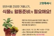 K-Classic News 기자 | 고양특례시는 반려식물의 건강한 겨울나기를 위한 맞춤 해법을 제공하는 ‘그린케어, 겨울 대비 반려식물 돌보기 행사’를 오는 10월 23일 오후 2시부터 5시 30분까지 백마 화사랑에서 개최한다고 밝혔다. 먼저 백마 화사랑 야외 공간에서는 고양시식물병원 전문가가 상주해 시민이 직접 가져온 반려식물에 대해 1:1 현장 진단을 제공하고, 병해충, 과습 등 식물의 상태에 따라 분갈이, 영양제 처방 및 맞춤형 월동 관리법을 안내한다. 별도 신청 없이 당일 현장 접수로 참여 가능하다. 실내에서는 ‘반려식물 동절기 핵심 관리법’을 주제로 체험형 특강이 진행된다. 겨울철 생육 관리 요령, 휴면기 대비 가지치기 및 분갈이 실습 등 내년 봄의 성장을 위한 전문적인 지식을 습득할 수 있다. 특강은 백마 화사랑 누리집에서 선착순 12명까지 신청할 수 있다. 시 관계자는 "겨울은 식물이 가장 취약해지는 시기인 만큼, 이번 행사를 통해 전문가의 과학적인 진단과 맞춤형 솔루션으로 반려식물과 더욱 건강하고 풍요롭게 겨울을 나시길 바란다”고 전했다. 행사에 대한 자세한 내용과 특강 신청은