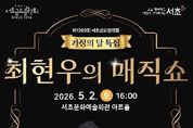 K-Classic News 기자 | 서울 서초구가 가정의 달 5월을 맞아 오는 5월 2일 토요일 오후 4시, 서초문화예술회관 아트홀에서 서초토요콘서트 '최현우의 매직쇼'를 개최한다고 밝혔다. 온 가족이 특별한 추억을 만들 수 있도록 마련된 '최현우의 매직쇼'는 국내 대표 마술사 최현우가 선보이는 환상적인 매직 퍼포먼스를 통해 가족 단위 관람객에게 풍성한 볼거리를 제공할 예정이다. 특히 단순한 마술 공연을 넘어 관객과 함께 호흡하며 몰입감을 높이는 참여형 무대로 구성돼, 눈앞에서 펼쳐지는 다채로운 퍼포먼스와 유쾌한 연출로 공연장을 찾은 관객들에게 잊지 못할 시간을 선사할 것으로 기대된다. 이번 공연은 서초구민 우선예매와 일반예매 모두 1시간 만에 전석 매진되며 높은 관심을 입증했다. 공연과 관련한 자세한 사항은 서초구청 홈페이지를 확인하거나 문화관광과로 문의하면 된다. 한편 구는 사계절 내내 구민들이 일상 속에서 문화예술을 향유할 수 있도록 다양한 공연과 축제를 운영하고 있다. 앞으로도 계절별·테마별 문화행사를 통해 ‘대한민국 대표 문화예술도시 서초’의 위상을 지속적으로 강화해 나갈 계획이다.