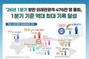K-Classic News 기자 | 문화체육관광부는 올해 1분기(1~3월) 한국을 방문한 외국인 관광객이 약 476만 명을 기록하며, 3월 중동사태 발생에도 불구하고 1분기 기준 역대 최대 규모를 달성했다고 밝혔다. 이는 2025년 같은 기간 대비 23% 증가한 수치이며, 특히 3월에는 외래객 약 206만 명이 방한해 월별 기준으로도 최대 실적을 경신했다. ‘케이-컬처’의 세계적 인기와 더불어 민관의 적극적인 외래관광객 유치 노력이 결실을 본 것으로 분석된다. 시장별로 보면, 중국 관광객이 145만 명(+29%)을 돌파하며 가장 큰 비중을 차지했고, 일본 관광객도 94만 명(+20.2%)이 한국을 찾으며 성장세를 이어갔다. 대만 관광객은 54만 명(+37.7%)까지 증가하여 주요 시장 중 증가세가 가장 두드러졌다. 그 외 미국, 유럽 등 원거리 시장 외래객도 69만 명(+17.1%)으로 증가하며 방한 시장 다변화를 이끌었다. 올해 1분기에는 크루즈 관광 시장의 성장도 돋보였다. 제주·부산·인천 등 주요 기항지로 입항한 크루즈선은 총 338척(항차 기준)으로 전년 같은 기간 대비 52.9% 증가했다. 이는 정부가 추진해