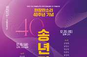 K-Classic News 이백화 기자 | ◈ 2025년 연말, 완창판소리 40년의 발자취를 되돌아보다 - 매년 국립극장 한 해를 마무리하는 상징적인 무대로 자리매김한 <송년판소리> - 40년간 100명의 명창과 함께해 온 완창판소리 역사를 조명하는 특별한 시간 마련 ◈ 시대를 대표하는 명창 11인과 역대 출연 고수, 사회자까지 총출동 - 국가무형유산판소리 보유자 6인, 지방무형유산 판소리 보유자 5인이 판소리 정수 선사 - 창자들과 호흡 맞춰 온 역대 출연 고수 4인과 사회자 5인 참여로 40주년 의미 더해 ◈ 홀로그램, 기록영상 결합 등 전통과 미래를 연결하는 새로운 경험 - 국가무형유산 판소리 ‘적벽가’ 보유자 송순섭 명창 무대 홀로그램으로 구현 - 명창들의 과거 완창판소리 기록 영상을 통해 판소리의 역사 되새겨 공연명 2025 국립극장 완창판소리 40주년 기념 <송년판소리> 일시 2025년 12월 19일(토)~20일(일) 평일 19:30 / 주말 15:00 장소 국립극장 달오름극장 주요제작진 연출 유은선 예술감독 겸 단장/ 작가 남화정 주요출연진 19일 창자 김수연·윤진철·정회석·김세미·모보경 고수 조용수·김태영 해설 유영대·정회